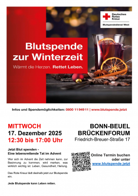 LETZTER DRK-BLUTSPENDETERMIN IN BONN FÜR 2025